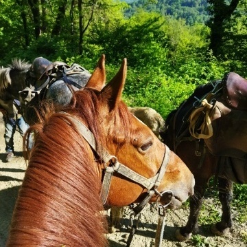 Маршрут для уверенных всадников или просто любителей долгих конных прогулок. В этом туре Вы увидите максимальное разнообразие природы Сочи - густой самшитовый лес, крутые спуски и подьемы, пересечение горной речки Псахо, проезд по полям, где красивые смотровые площадки, отдых на знаменитом каньоне Псахо, где можно вкусно и не дорого перекусить и искупаться в теплой заводи каньона Псахо.